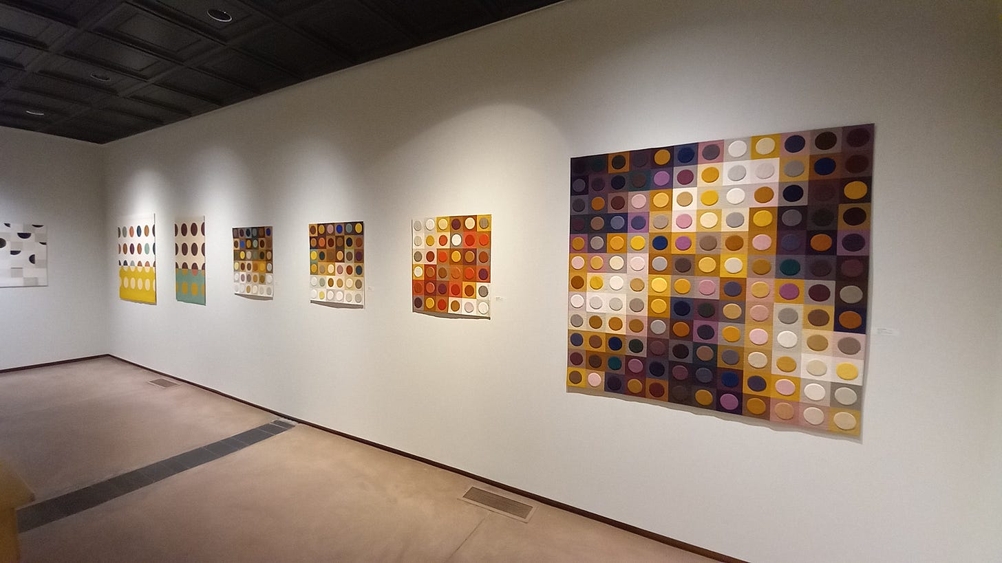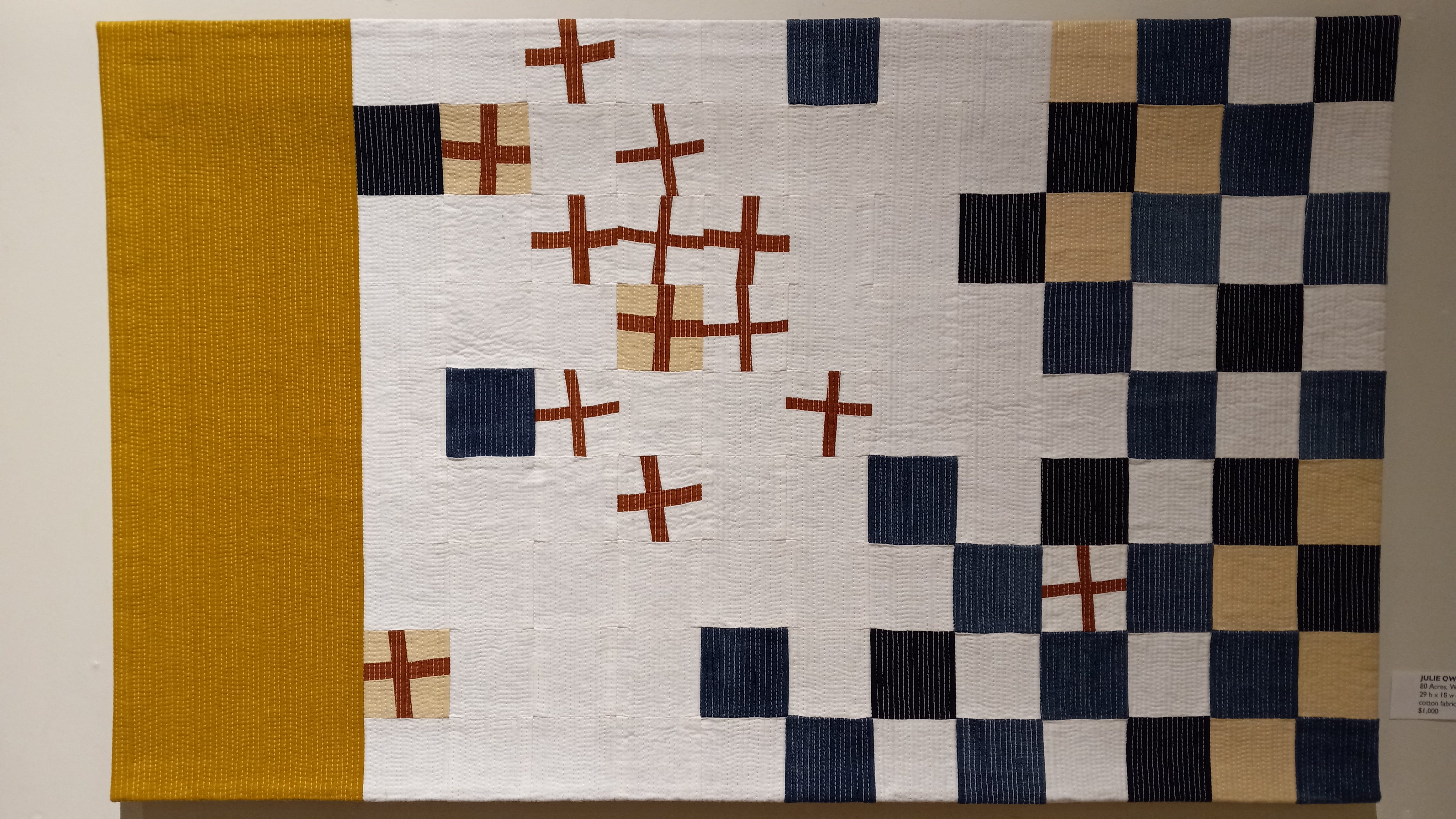 Other works of hers played with her characteristic rigid grid structures in fun and unpredictable ways. These next two reference the countryside surrounding Omaha; as such they are the only works in the show with an explicit tie to the local geography.