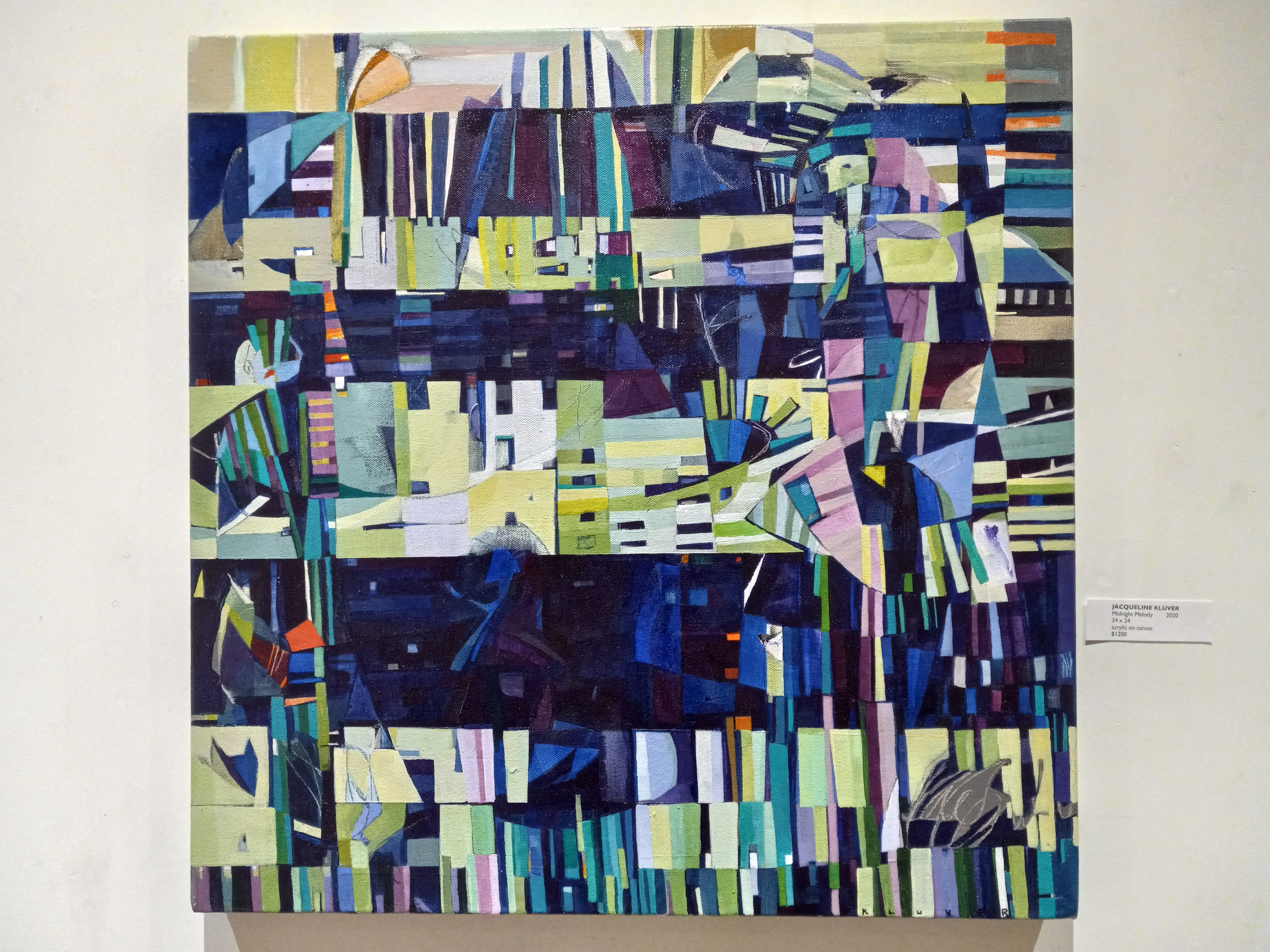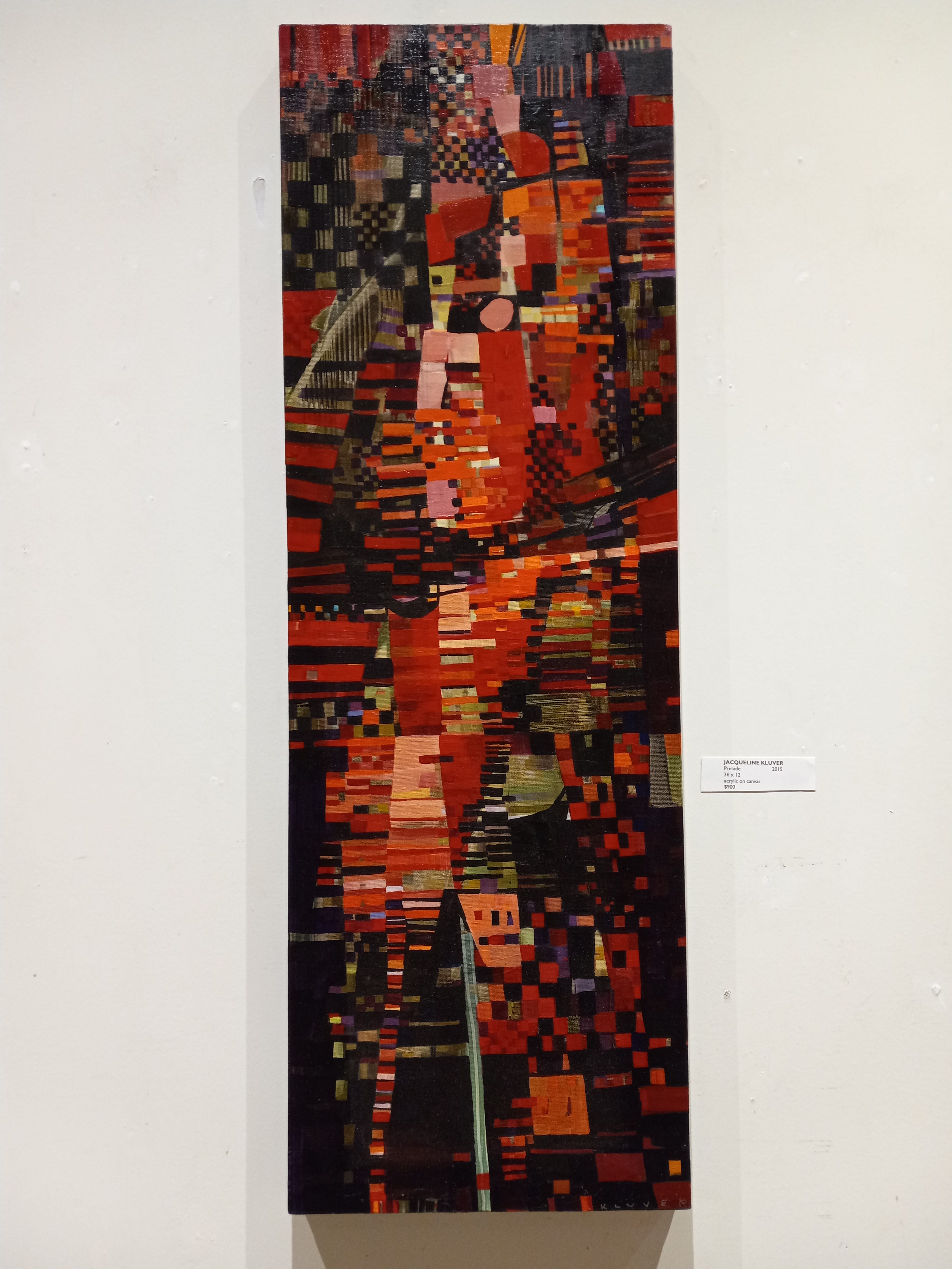 Picasso, Braque, and the other early analytic cubists have obviously captured the imagination of Jaqueline Kluver, whose canvases vibrate with the most jumped-up energy of anything in the gallery. I’m also a big fan of the analytic cubists; Kluver has wisely decided not to obsess over brushstrokes as they did (Braque and Picasso always seemed to make a point, with their brushstrokes, of alerting the viewer that their works were paintings above anything else—at least, until they discovered collage). I’m interested in how these kinds of paintings are planned and executed: in Kluver’s works I can detect some hint of underlying structure, which is evident or obscured as the case may be.